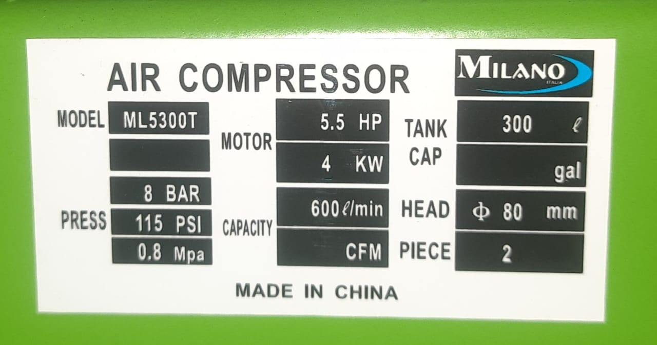 Capacity 300litres 5.5hp 8 bar One year warranty